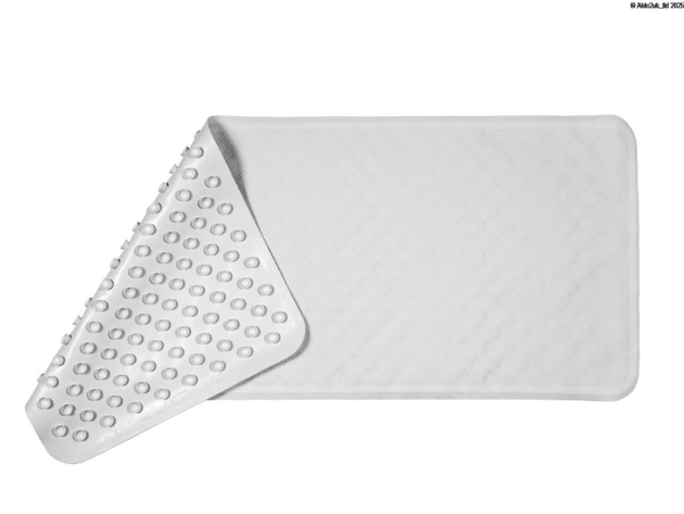 These Rubbergrip Bath Mats have a ribbed surface and suction cups for added slip resistance. The mats are self draining and fully machine washable. The mats are available in white only and in two sizes.