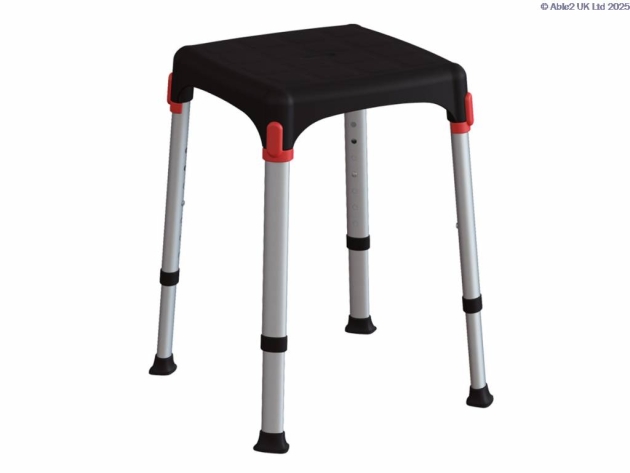 This square top, height adjustable shower stool is designed to offer more safety and independence in the shower. The black plastic seat provides a striking element of differentiation that fits well with the elegant and modern design that works to complement any bathroom interior.