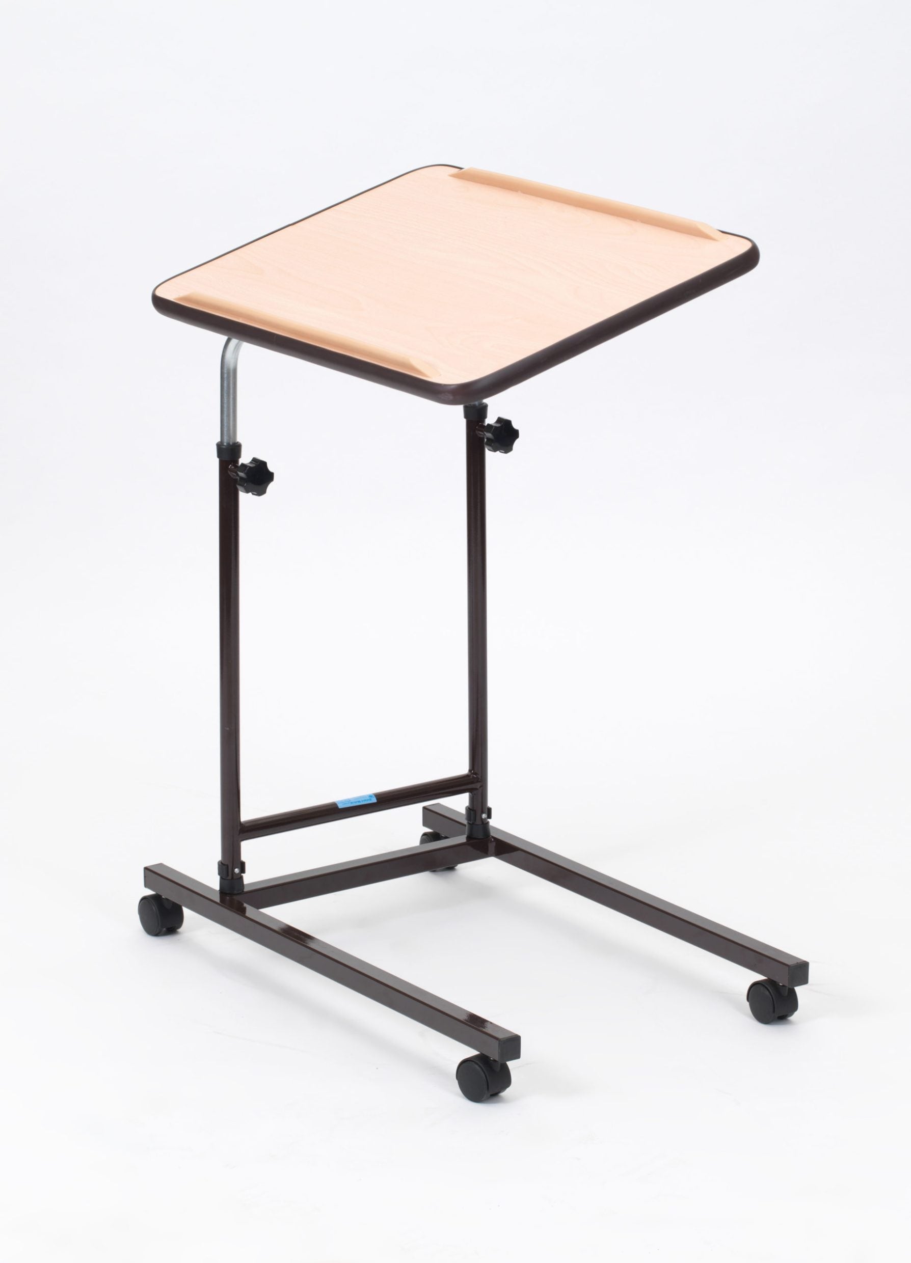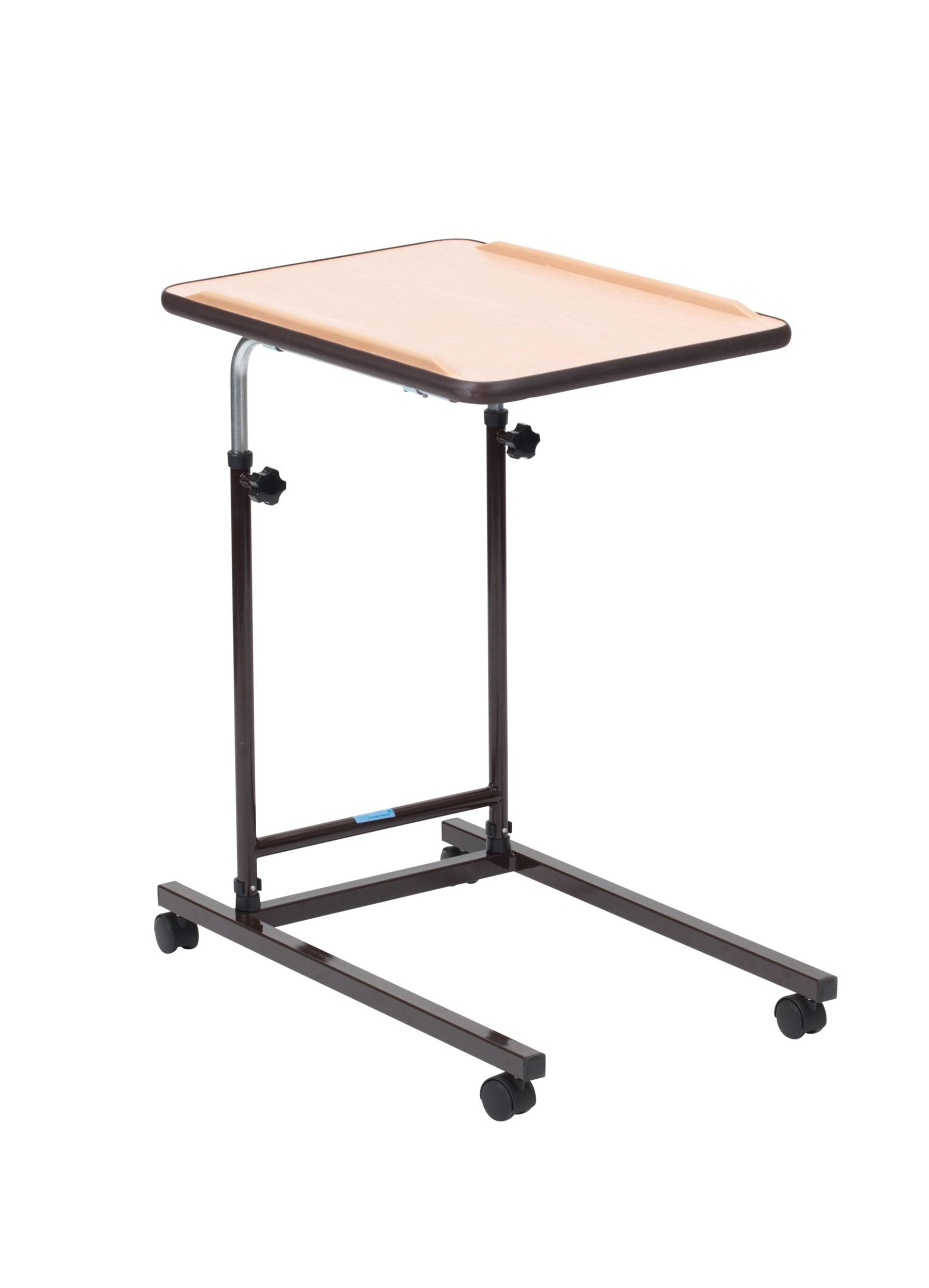 The Mobile Open Toe Table can be used over furniture to enable users to eat, read or undertake hobbies whilst sitting in a chair or bed. Stability and strength are ensured by a combination of its robust steel construction and Duradip peel-resistant plastic. The table is adjustable in height and tilt, via strong plastic hand wheels, best suiting the users requirements. This model features four castors for easy manoeuvrability.